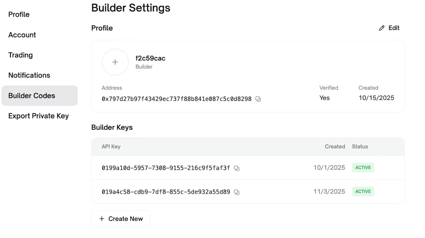 Login to your account > go to profile > Builder Codes