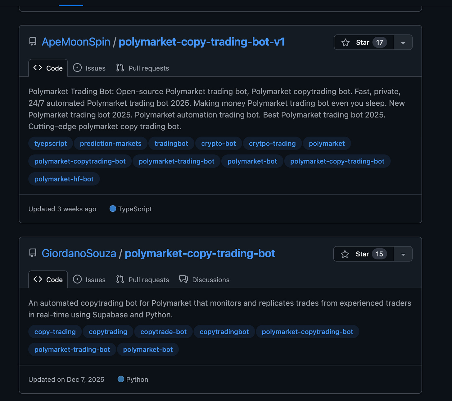 https://github.com/topics/polymarket-trading-bot