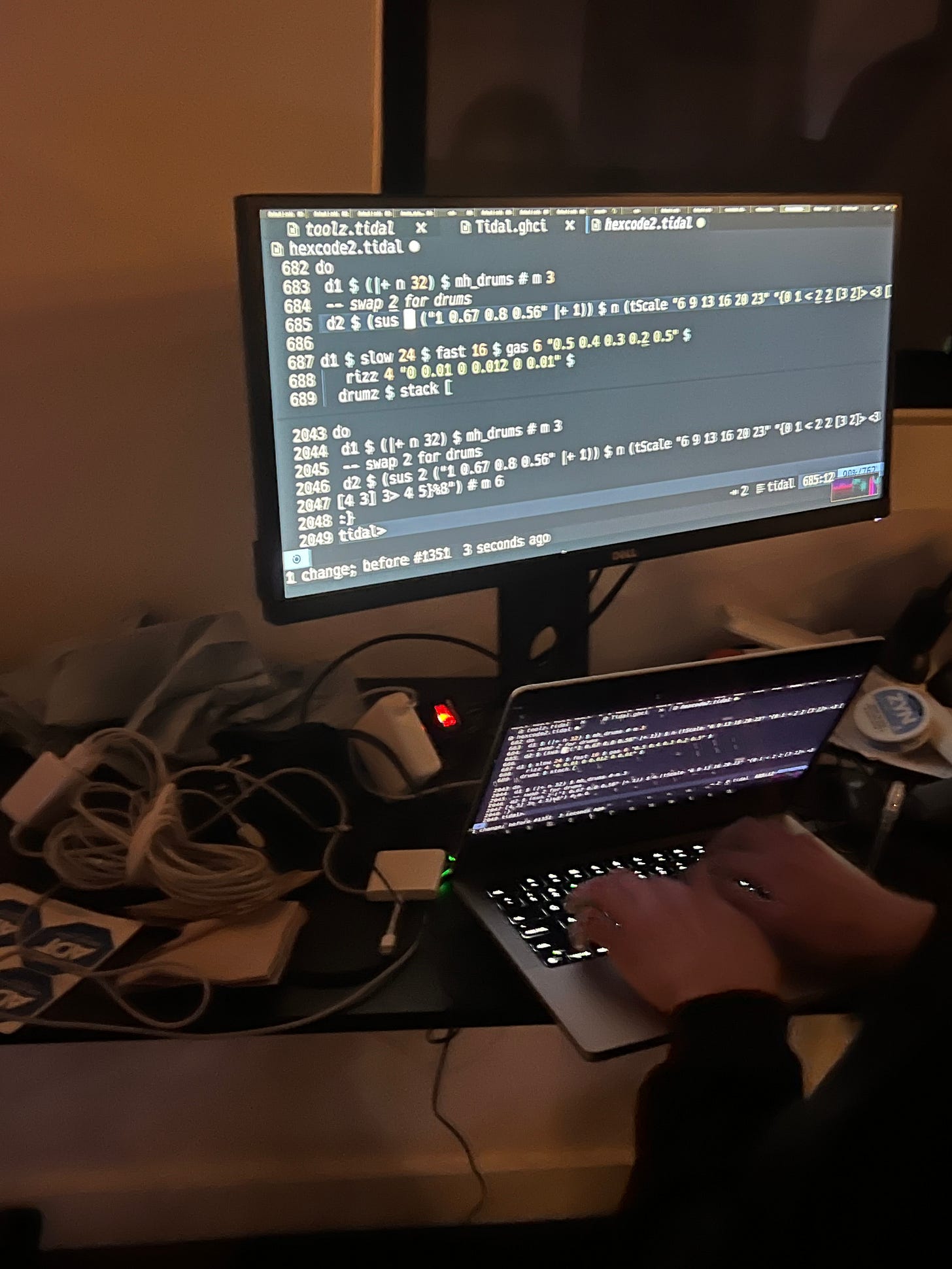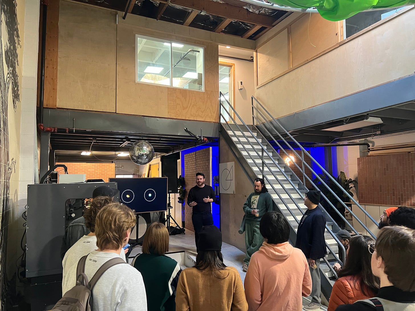 On Saturday, December 9th, in the morning I went to the Ai x Art hackathon. I formed a team and an idea to use live coding, openAi, and real time Ai image generation to create a DJ music visualization tool. What really inspired me here is this recurrent experience of dancing at night clubs and having so much fun and then wishing that I could build some creative tech thing here that makes the experience of night life more exciting and that it makes the most of the time, so that you are exercising and dancing in more ways than just physically. That you are also engaged in other mediums like words, visuals and communicating with others. Because right now in dance there is only the DJ that outputs the songs and the crowd dances and responds to the music. It is very one way and it is only restricted to the sense of physical being but not language or communication. There is space here to make an art that produces some beautiful experience.