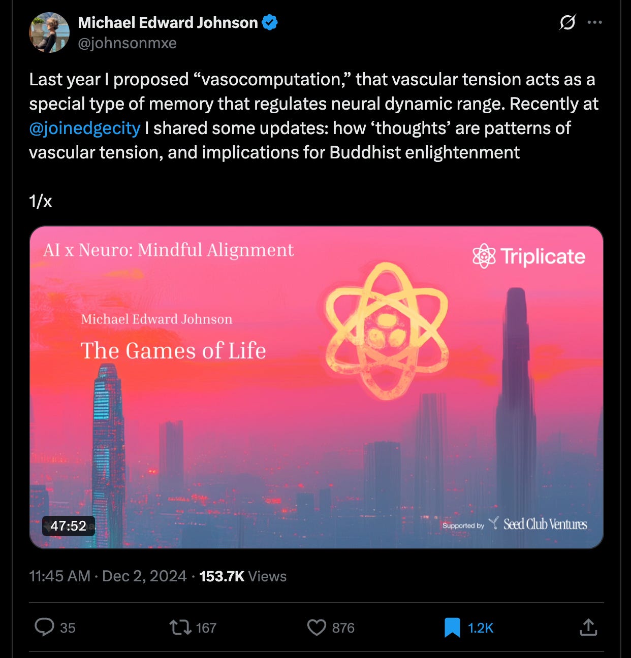 There is a scientist that is working on a new field he called “vasocomputation,” that studies how vascular (blood veins) tension acts as a type of memory, that regulates neural dynamic range, meaning in effect, how you think, feel and perceive the world. In his talk linked here he talks about how this explains ‘thoughts’ as patterns of vascular tension, and implications for Buddhist enlightenment. I found his work since he is participating at the Edge City Patagonia - Consciousness Residency that I am taking part in this month. I predict that this new perspective explains things like the trauma described above and how things like somatic shaking therapy, ecstatic dance and scream therapy can help ‘unlatch’ these blockages in blood flow. I imagine having VR applications that allow people to experience traumatic situation in a new whole body physical interaction with the digital space, such that their limiting fear - flight - freeze based response patterns are changed through awareness and guidance in physical movement.