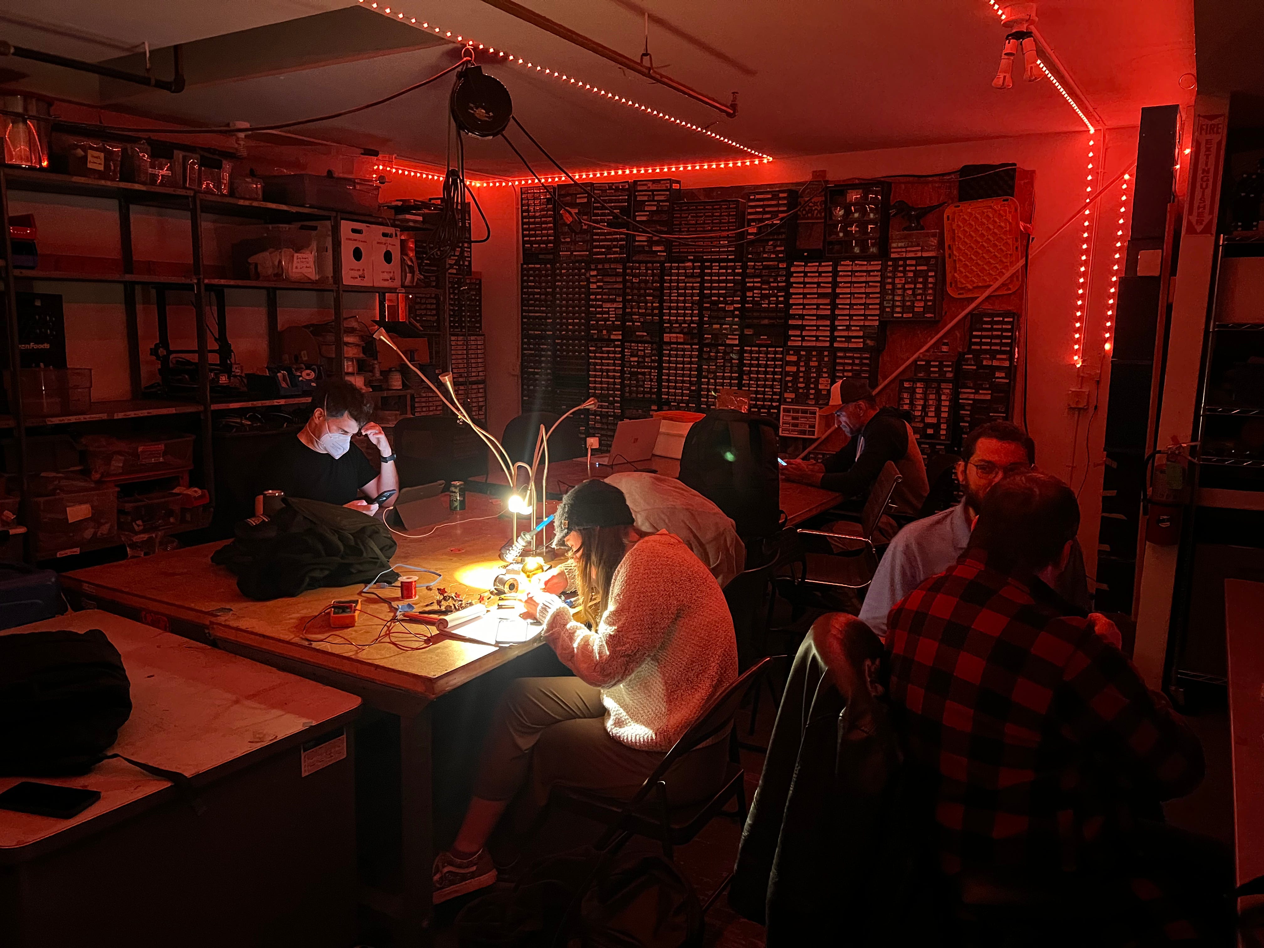 This week I bought a subscription on meetup dot com and setup two events at noisebridge. I got there on the day of and didn’t expect anyone to show up. Indeed I set it up only the day before. It ended up being very fortunate, I joined the community clean up session. We cleaned the upstairs electronics rooms, took out many bins of e-waste to the recycling center, swept up the floors, and made the place look really clean. I connected with many members of the community through this and we all had a really good time. My high spirits and enthusiasm for the space and for the potential there was sensed and it was reflected and amplified by others. I helped new visitors get started on a electronics fashion project, helped people in the wood shop, helped people in the sowing room, helped debug an electronic lights program, and at the end of the day we all celebrated over some drinks and talked a long time about electronics, possible projects and other relevant matters.